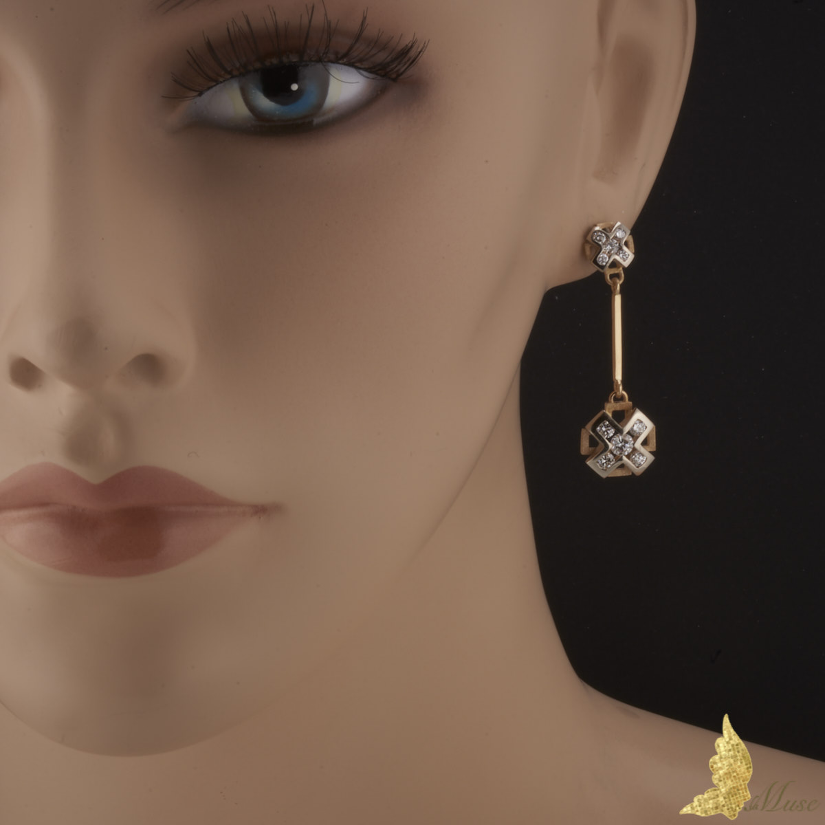 Projektowe kolczyki z diamentami 1,40 ct w białym i żółtym złocie 14K